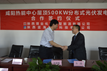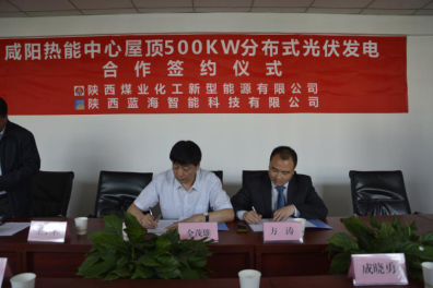 2017年5月10日上午10時(shí),“咸陽(yáng)熱能中心屋頂500KW分布式光伏發(fā)電合作簽約儀式”在咸陽(yáng)新興紡織工業(yè)園熱能動(dòng)力中心會(huì)議室舉行。陜西煤業(yè)化工新型能源有限公司總經(jīng)理全茂雄、咸陽(yáng)新興紡織工業(yè)園熱能動(dòng)力中心總經(jīng)理張東社、陜西藍(lán)海智能科技有限公司總經(jīng)理方濤等領(lǐng)導(dǎo)出席儀式。