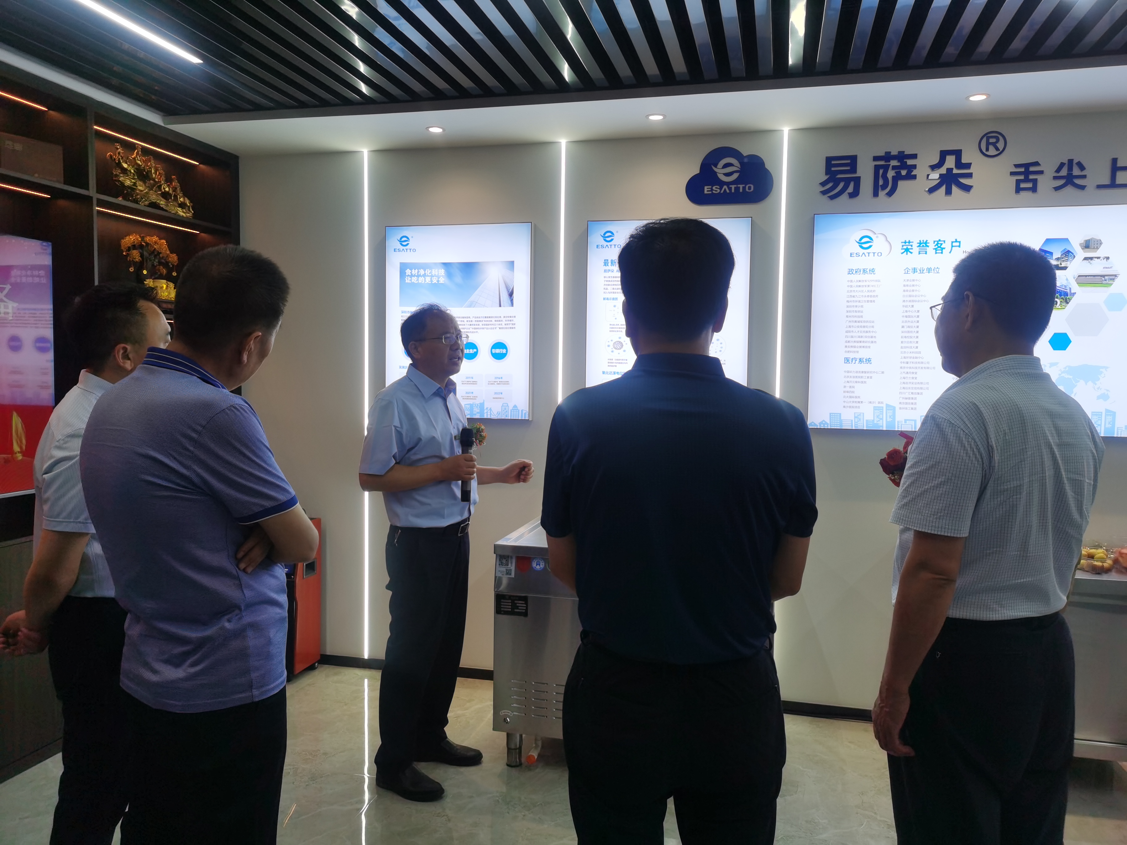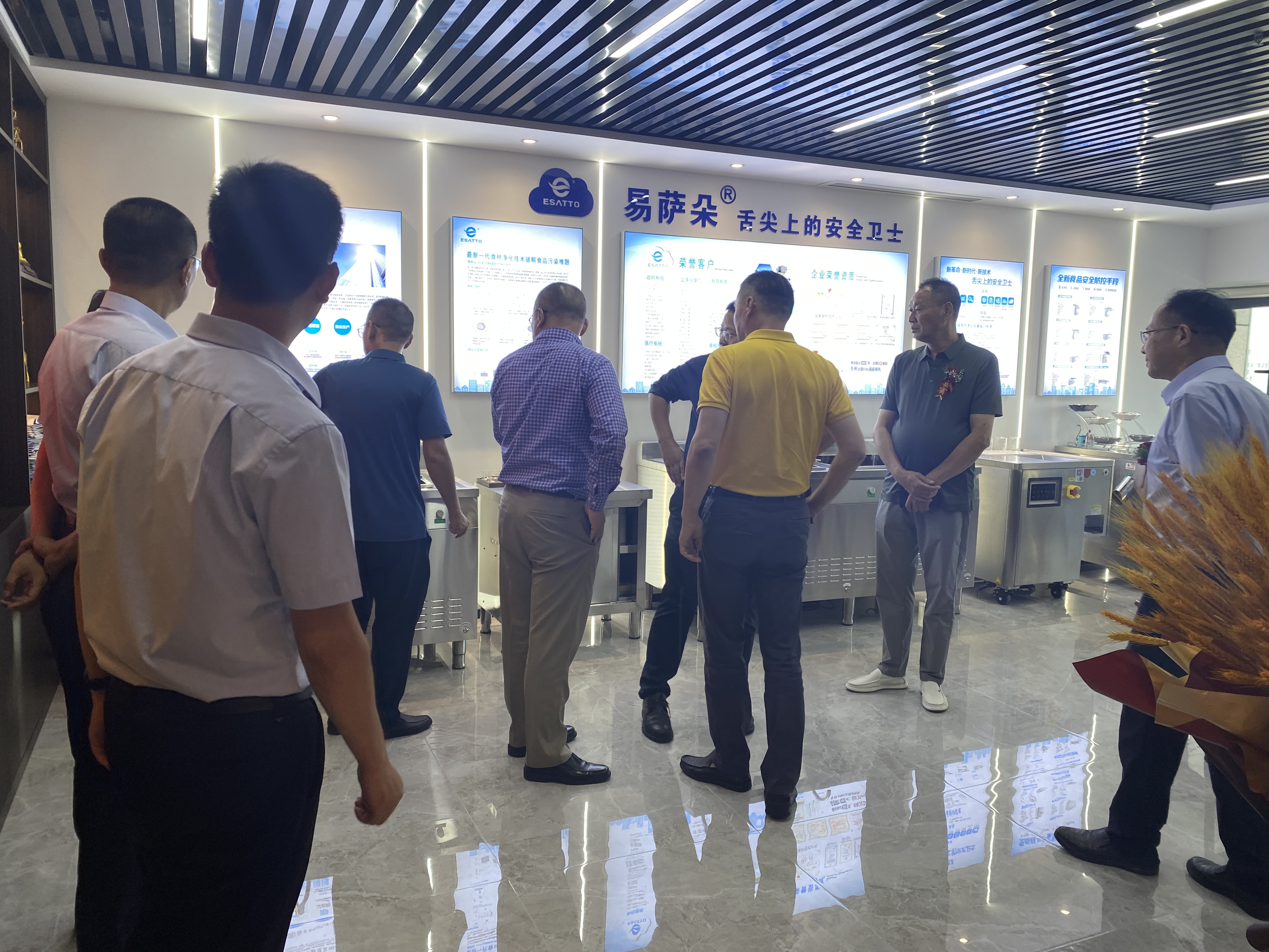 揭牌后,新寶盈集團(tuán)領(lǐng)導(dǎo)和參加揭牌儀式的企業(yè)家參觀了展廳,并觀摩了設(shè)備演示和蔬菜清洗、孔雀石綠降解實(shí)驗(yàn)。