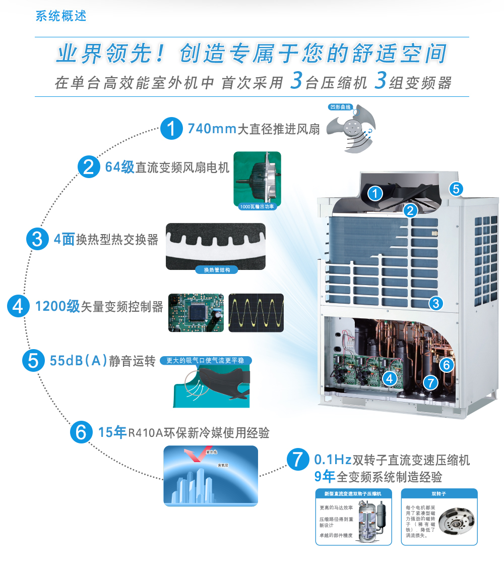 其次:在東芝SMMS—i系列中,最先使用了三臺(tái)壓縮機(jī)和三臺(tái)變頻器的技術(shù),目前這技術(shù)是東芝空調(diào)所獨(dú)有的。